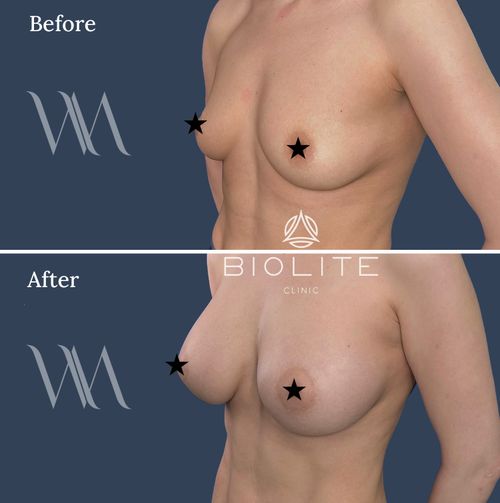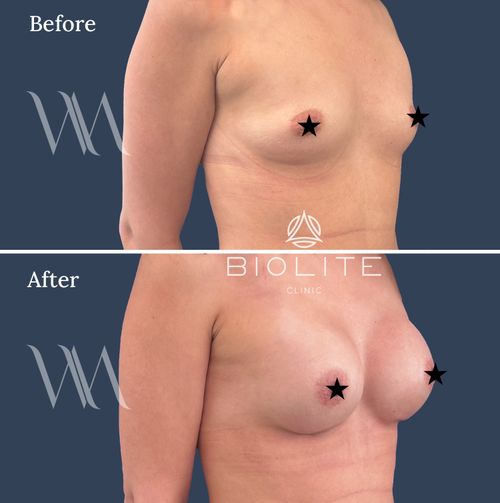 As the breasts settle into their new shape over the following weeks, the results become even more natural and refined. The outcome is soft, beautifully proportioned, and stable — a result that moves and feels like your own body.
